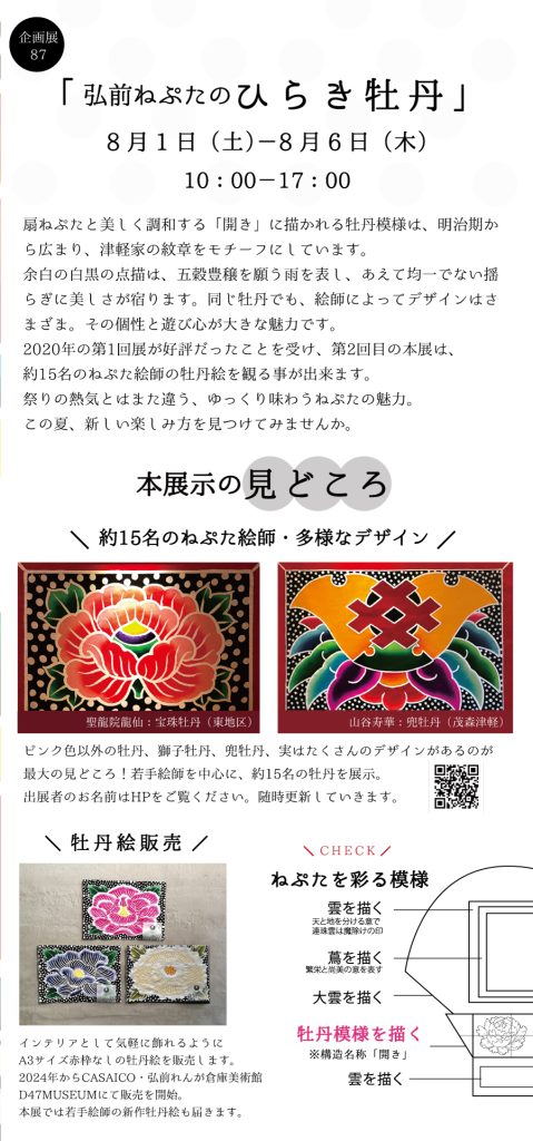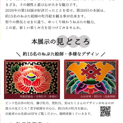 約15名のねぷた絵師の牡丹絵を観る事が出来ます。