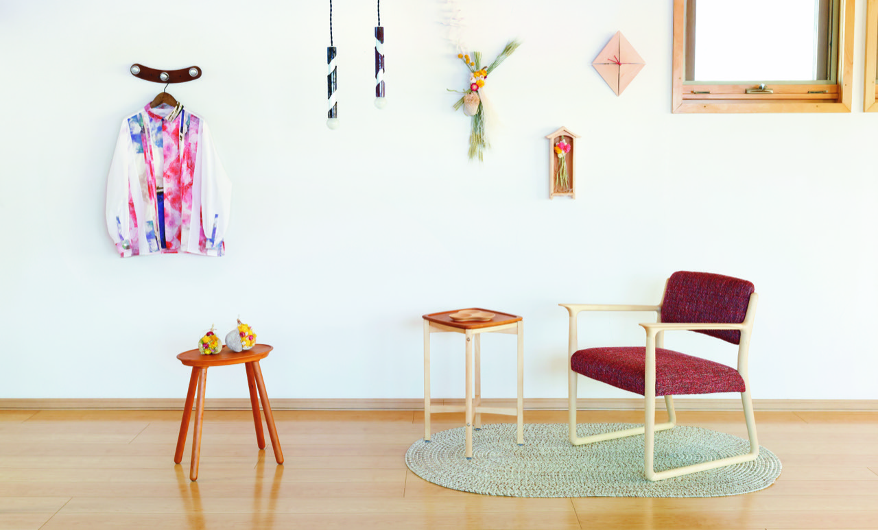 長い時間をともにできる一着です。藤井亜矢さんの木製品や家具、小物も並びます。